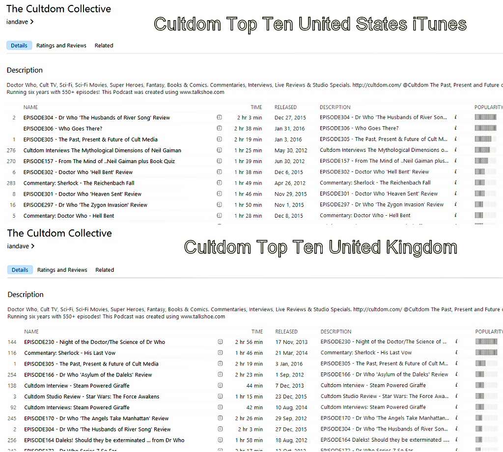 Contact – IanDave@cultdom.com OR cultdom@tiscali.co.uk